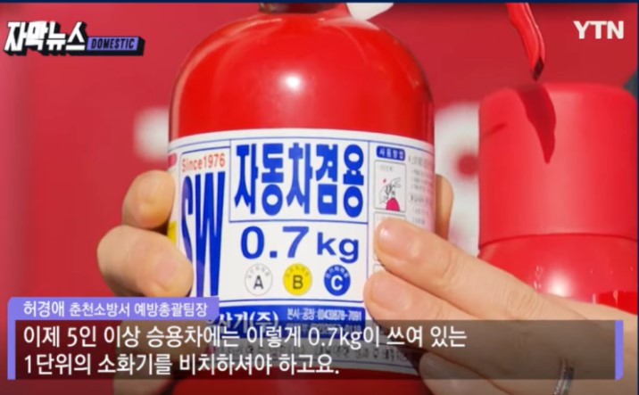 - 5인승 이상 모든 차량에 소화기 설치 의무화